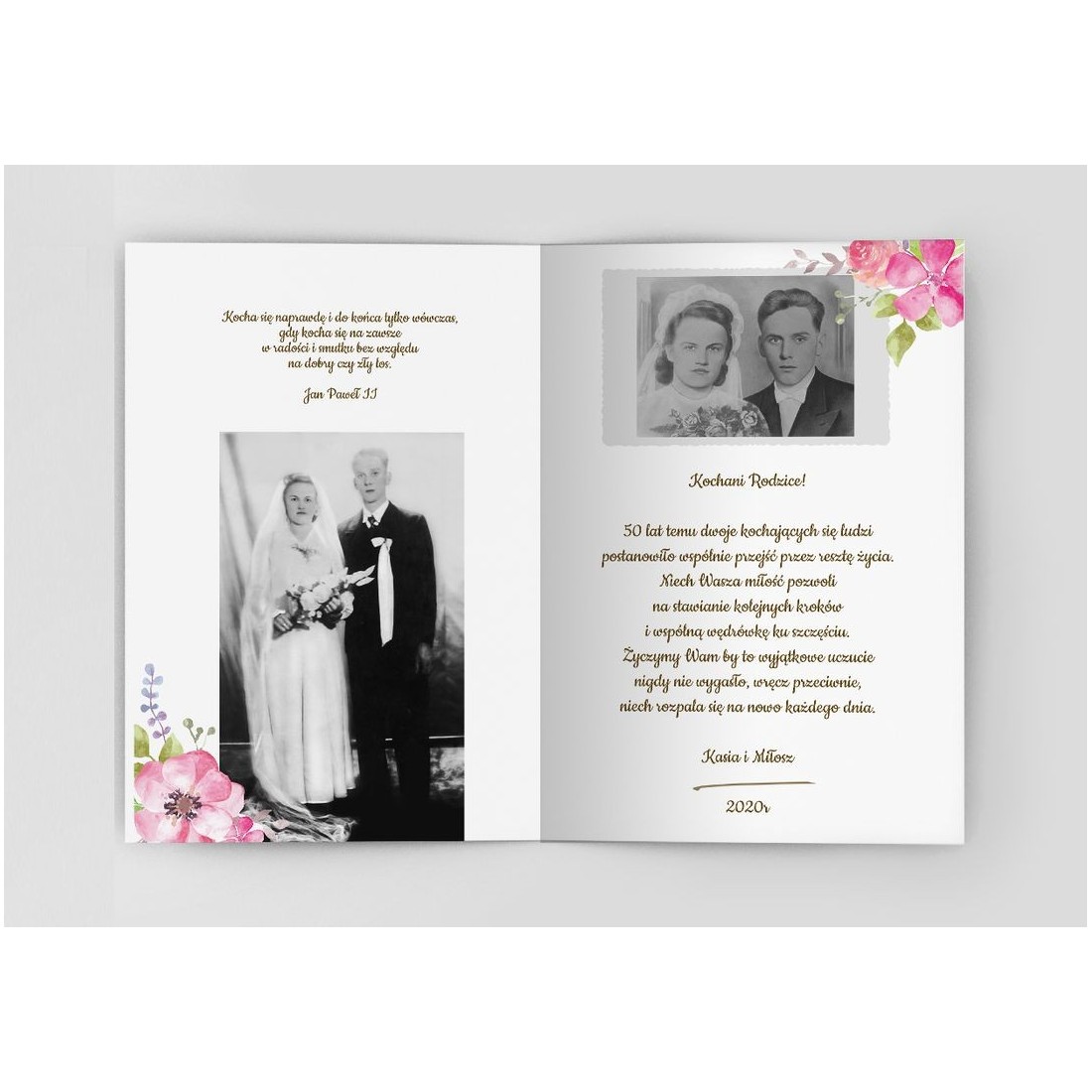 Kwiatowe zaproszenie jubileuszowe z motywem piwonii.