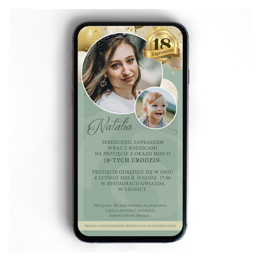 ZAPROSZENIE JEST PRODUKTEM CYFROWYM, WYPRODUKOWANYM DLA KLIENTA - NIE MA MOŻLIWOŚCI ZWROTU PO JEGO OTRZYMANIU.