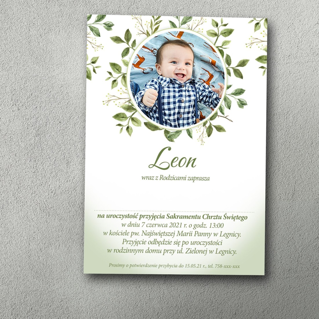 Personalizowane zaproszenie ze zdjęciem na chrzest święty – Miętowy Świt