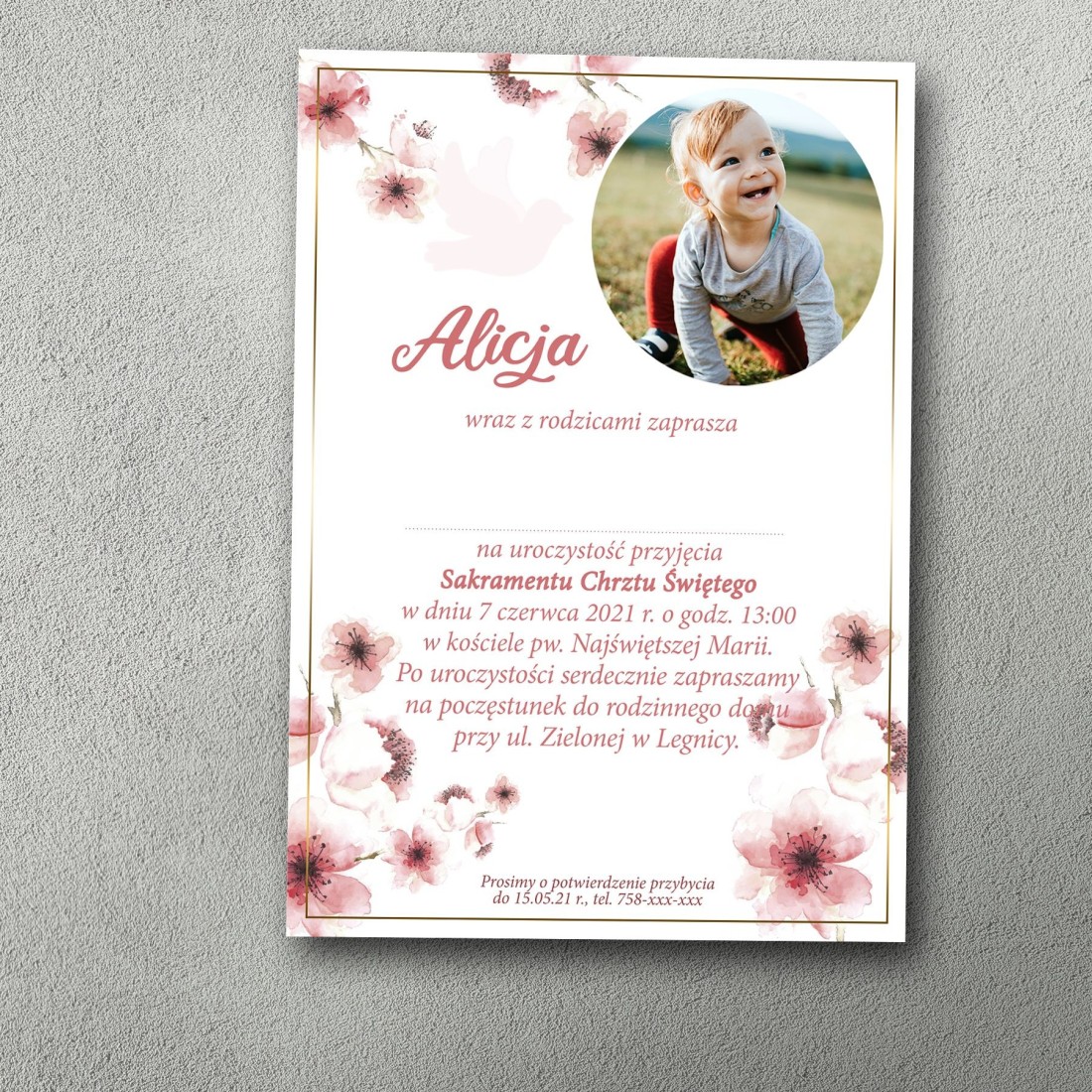 Personalizowane zaproszenie ze zdjęciem na chrzest święty – Makowe Niebo