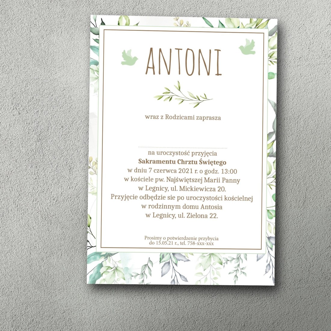 Masz możliwość dowolnej edycji tekstu – zmień dane, dodaj własne słowa lub dopasuj układ do charakteru uroczystości. Możesz również zmienić kolor czcionki, aby dopasować go do motywu przewodniego wydarzenia.
