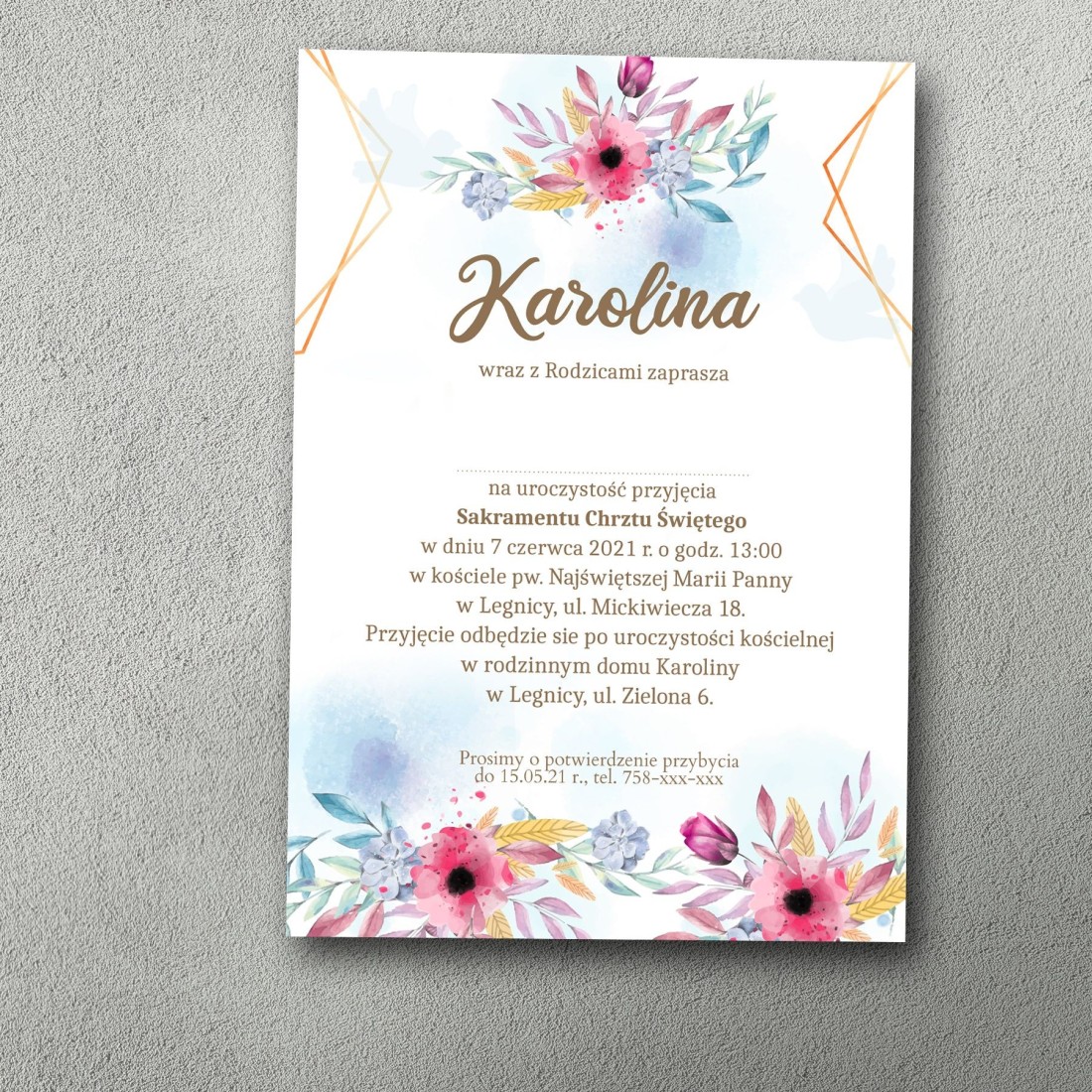 Zaproszenie na przyjęcie z okazji chrztu świętego. Jednostronne, personalizowane