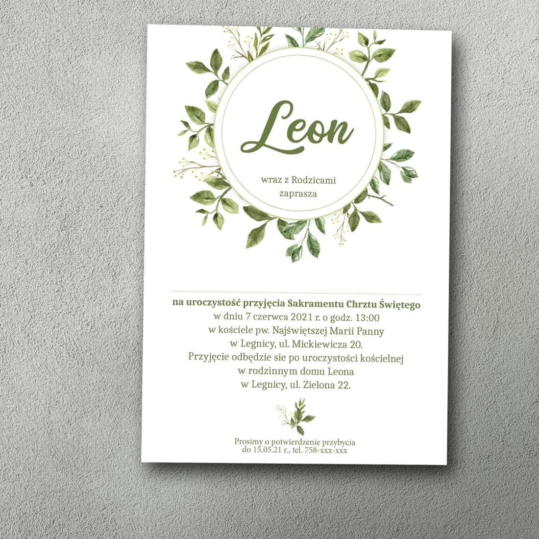 Personalizowane zaproszenie na chrzest święty – Zielony Wiąz
