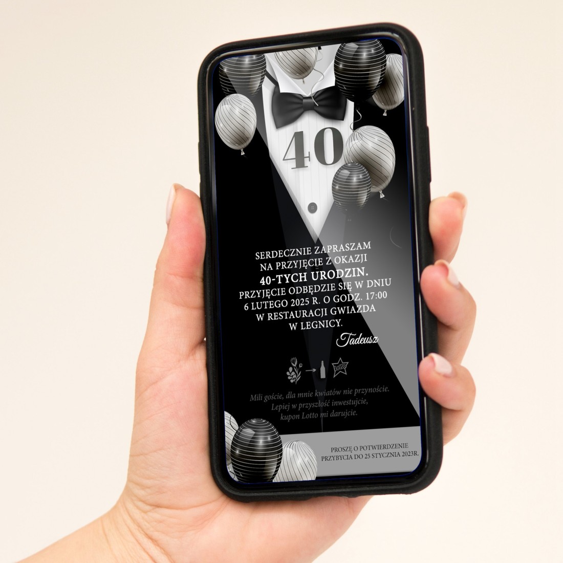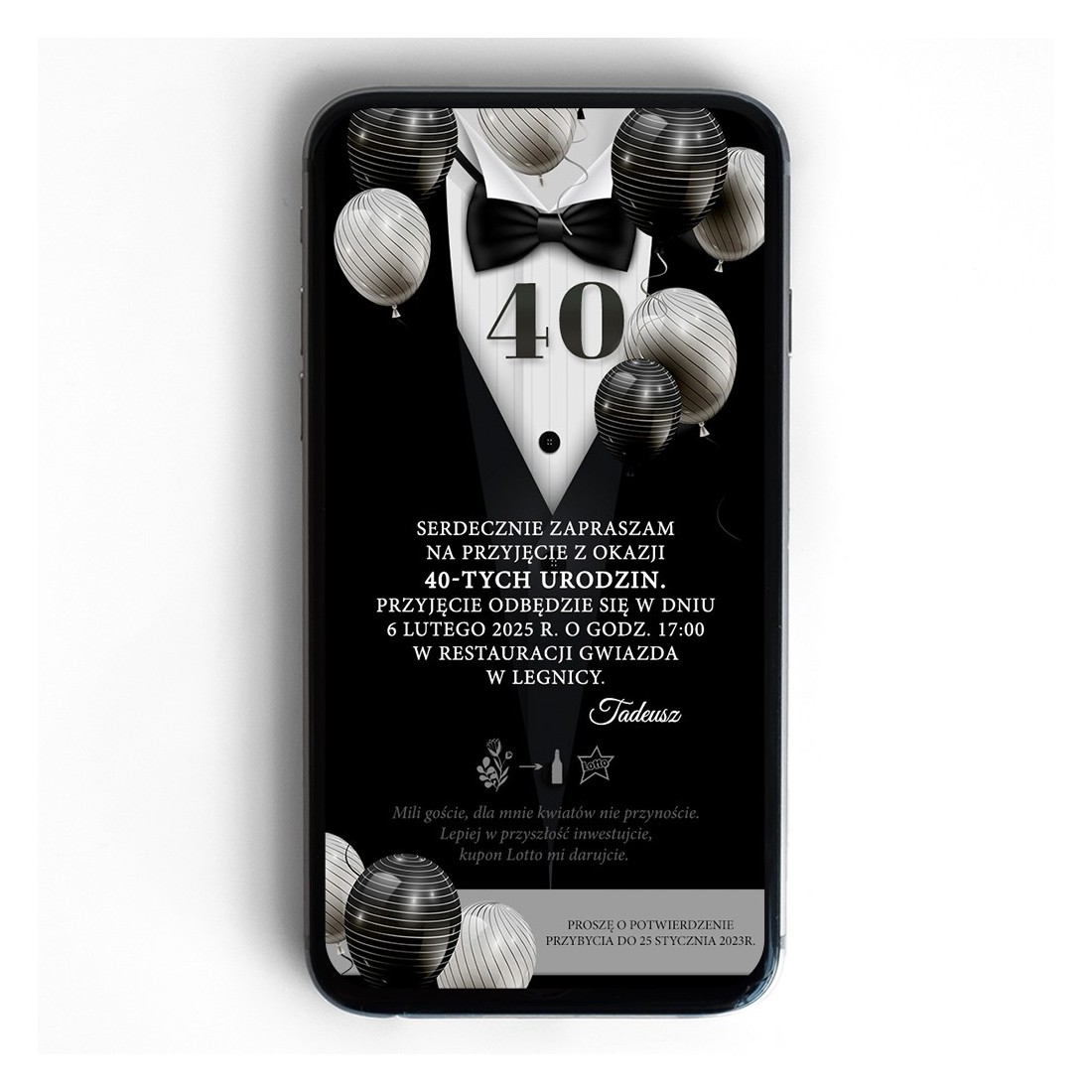 Eleganckie zaproszenie elektroniczne z motywem garnituru, stworzone z myślą o uroczystościach o formalnym charakterze.