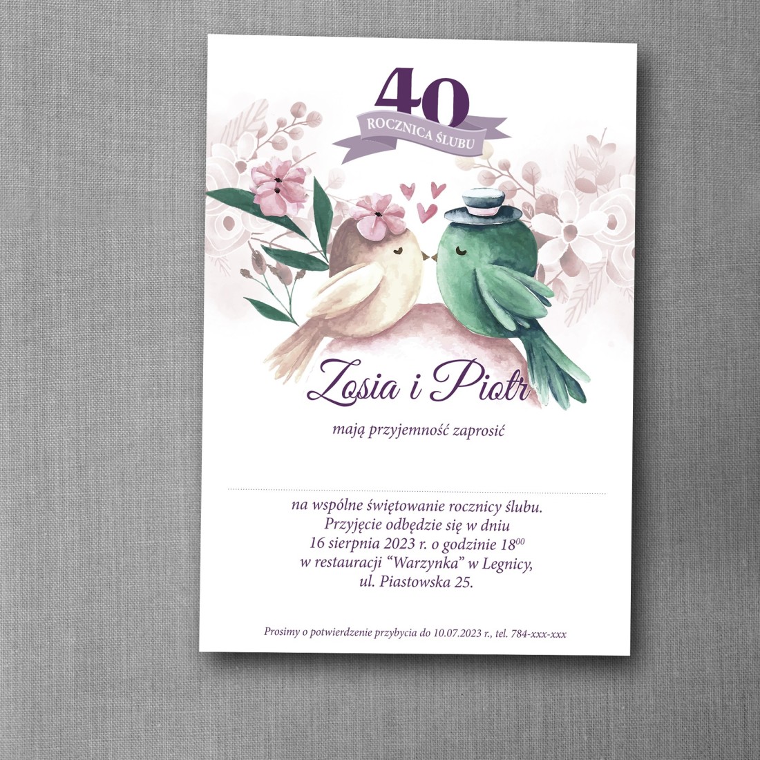 Zaproszenie na rocznicę ślubu – z miejscem na zdjęcie Jubilatów "Śpiew Skowronka"