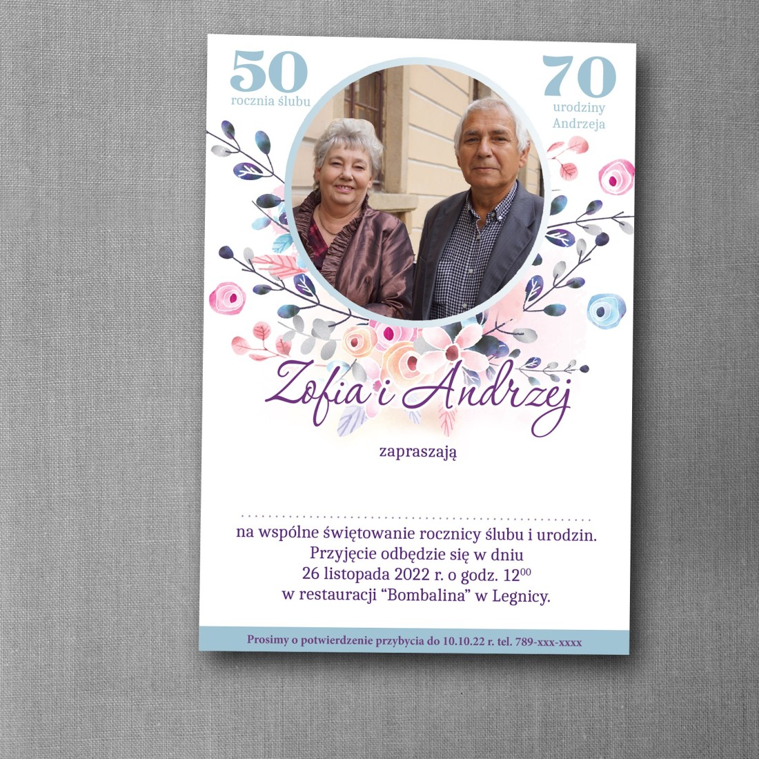 Projekt umożliwia wyraźne przedstawienie informacji dotyczących urodzin oraz rocznicy – zarówno ślubu, jak i związku partnerskiego. Czytelny układ sprawia, że zaproszenie jest uniwersalne i pasuje na uroczystości organizowane dla par w różnym wieku, a także na rodzinne jubileusze z udziałem dzieci i dorosłych.
