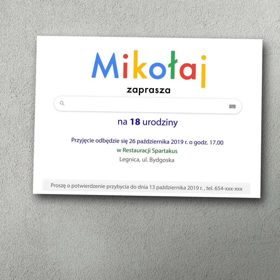 - Oryginalne zaproszenie na osiemnastkę styl google